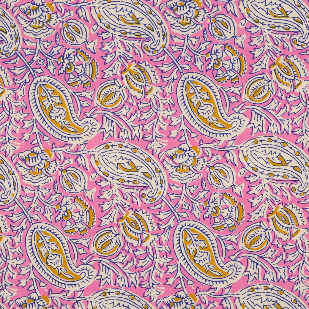 Vacker folkloristisk mönsterkombo i härliga färger, med handgjorda blocktryck. Paisleymönstren är ca 9cm långa. En härlig, mjuk och lite tunnare bomullspoplin (=tätvävd) med lyxig känsla. Tänk dig en skjorta eller en klänning eller en kudde eller en duk eller en gardin eller en duk eller…Allt!