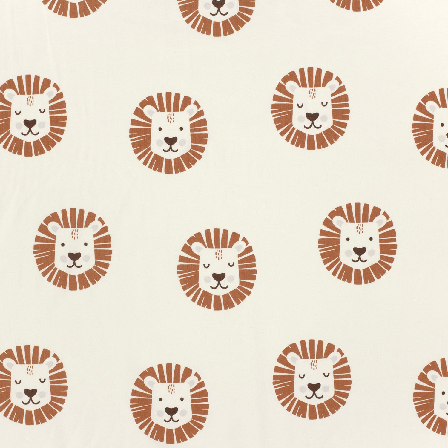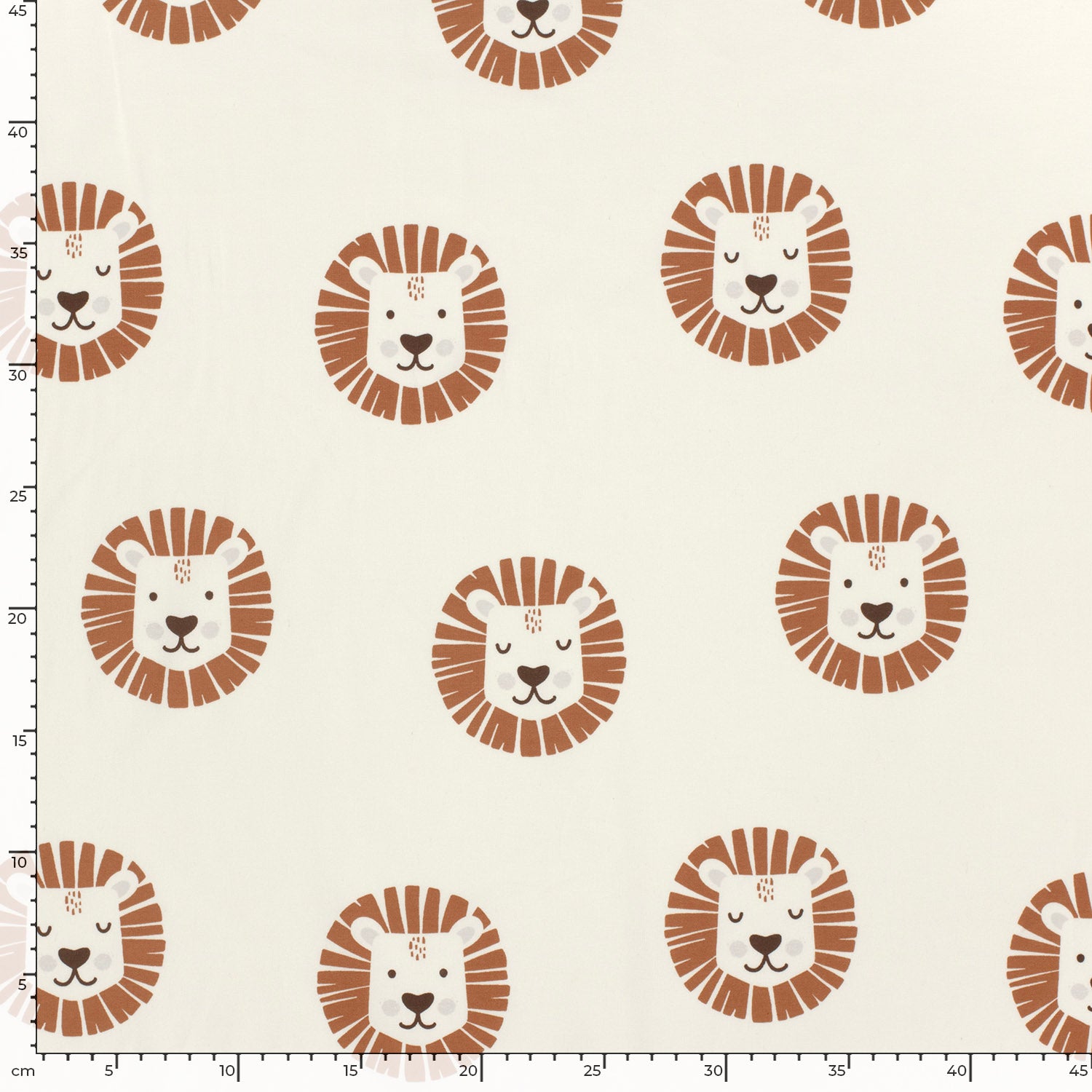 Lejon som dåsar på ett trikåtyg i en typisk tights/t-shirt-kvalite.