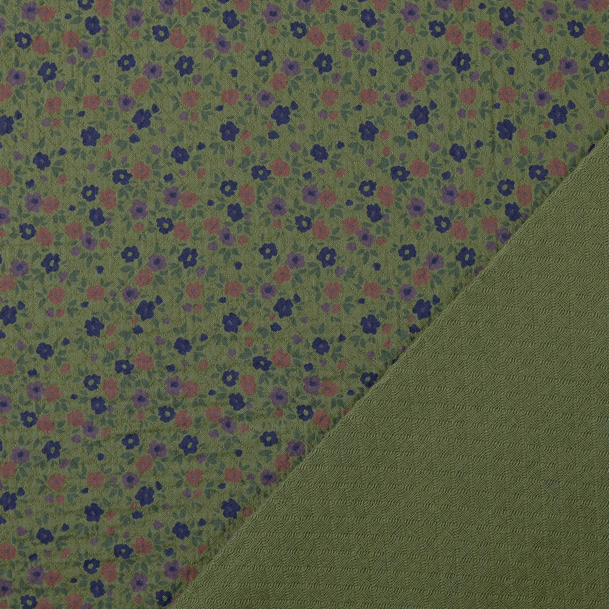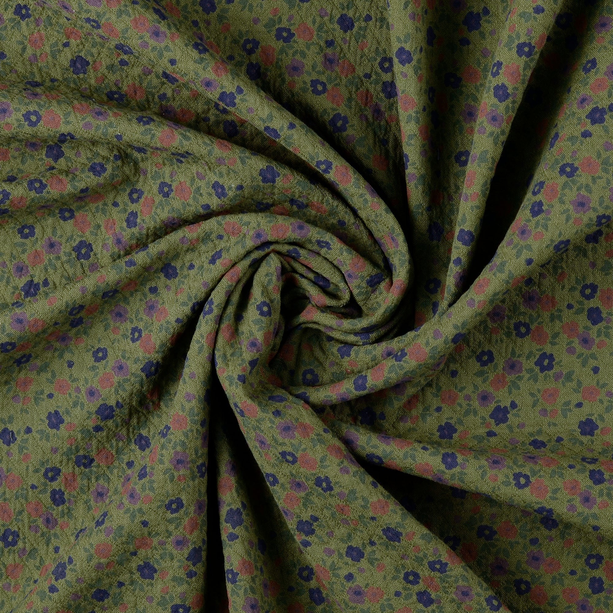 En alldeles ny kvalitet där stentvättad bomullsväv möter en klassisk jaquardväv. Resultatet blir en tvåsidig fantastiskt trevlig historia. Rätsidan är blommig (blommorna är ca 1cm) och ”avigan” är enfärgad med en vacker struktur. Går utmärkt att kombinera – perfekt matchning! Känns mjuk och skön, med lite mer kropp än i vanliga bomullstyger. Gör sig lika bra i necessären, som i skjortan, som i kjolen, som i gardinen, som i örngottet, som i, ja, du förstår, den passar till lite utav varje.
