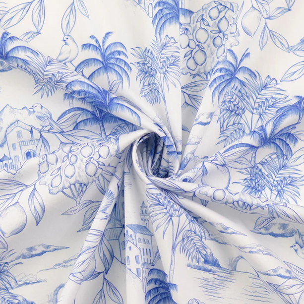 Kliv in i en exotisk drömvärld och dröm dig för en stund bort bland palmer, byggnader och citroner. Största fågeln är strax över 3cm. Gör sig lika bra i babynestet, som i skjortan, som i kjolen, som i gardinen, som i örngottet, som i, ja, du förstår, den passar till lite utav varje.
