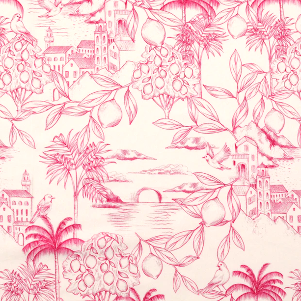 Kliv in i en exotisk drömvärld och dröm dig för en stund bort bland palmer, byggnader och citroner. Största fågeln är strax över 3cm. Gör sig lika bra i babynestet, som i skjortan, som i kjolen, som i gardinen, som i örngottet, som i, ja, du förstår, den passar till lite utav varje.