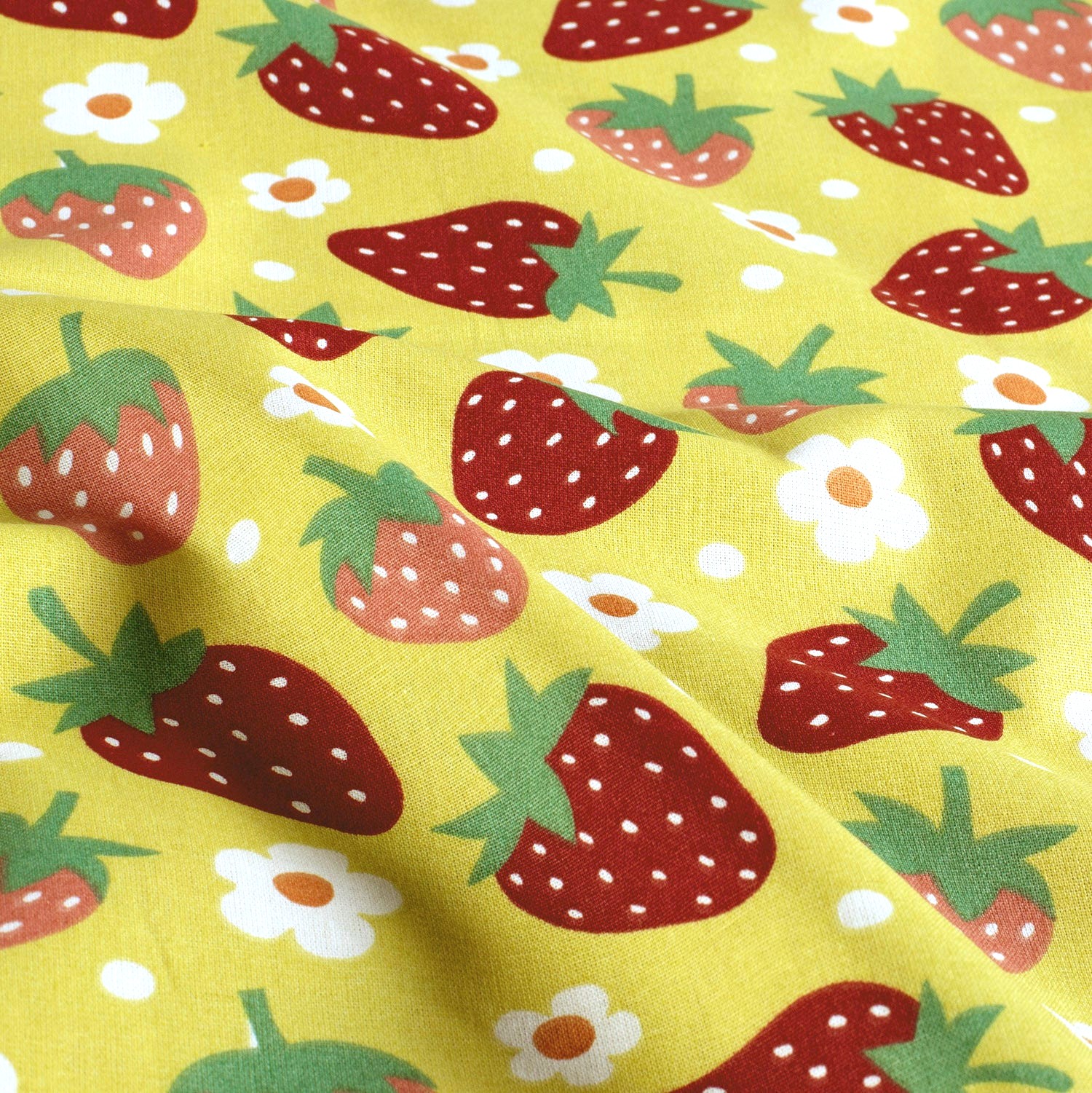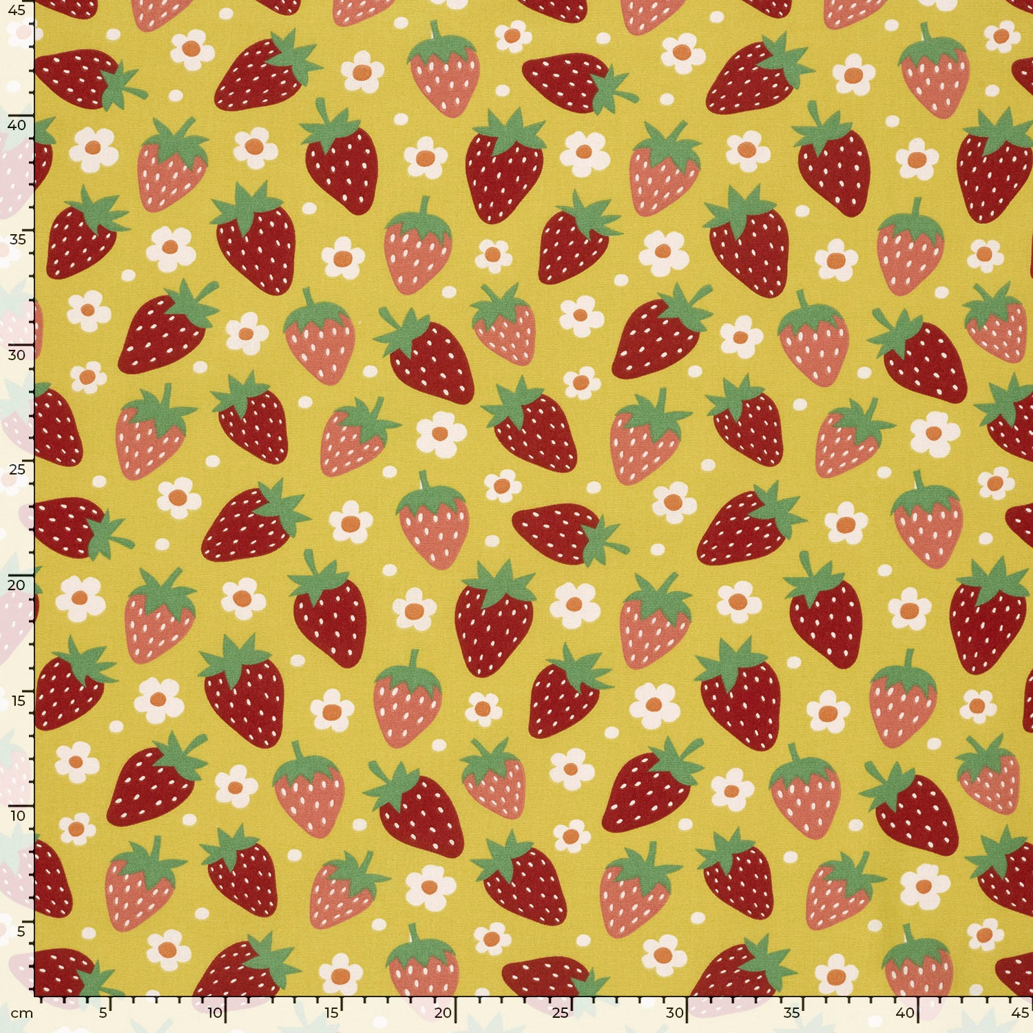 Här var det sommar i form av tyg. Blommigt, mjuka färger och så givetvis jordgubbar! Största jordgubben är ca 5cm.