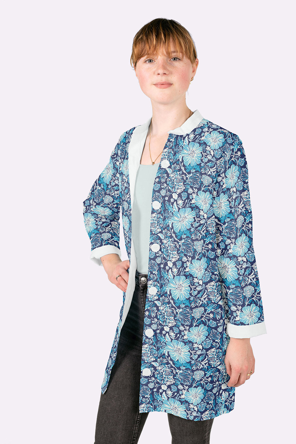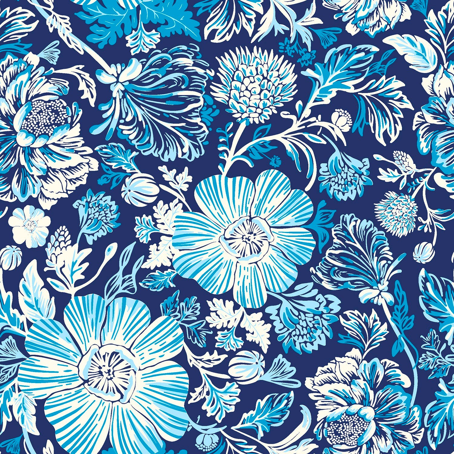 Bomullstyg Havsbrisblomma marinblå/turkos fg 8