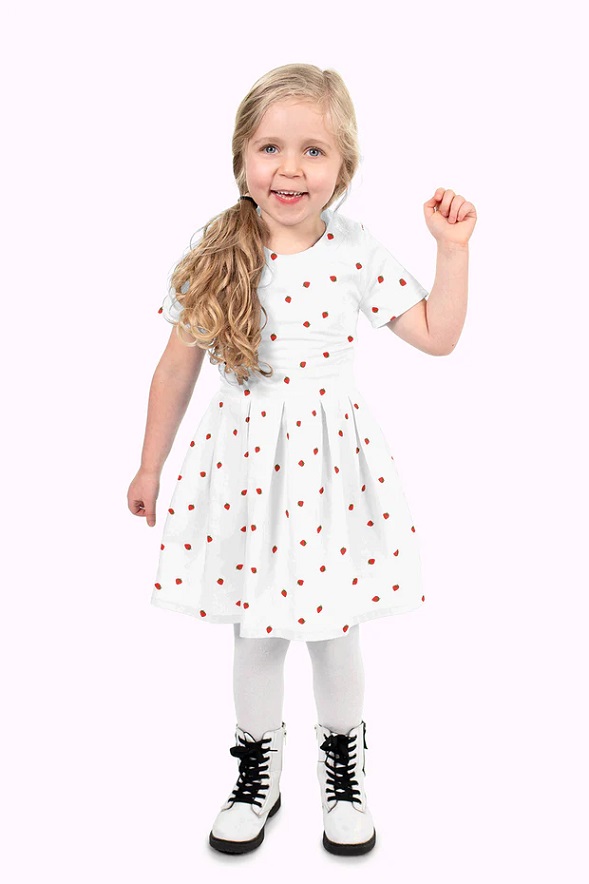Fem om da´n gör kroppen glad! Men bara en jordgubbe (ca 1cm stort) om dagen är inte så dumt det heller. En härlig bomullspoplin (=tätvävd). Gör sig lika bra i babynestet, som i skjortan, som i kjolen, som i gardinen, som i örngottet, som i, ja, du förstår, den passar till lite utav varje.