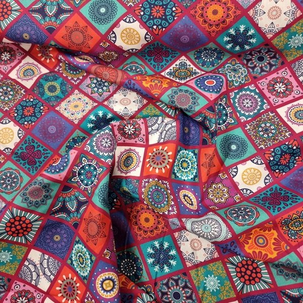 En mjuk och behaglig bomullsväv med mönster och färger som gör en alldeles bubbelglad. Varje ruta är ca 4cm. Gör sig lika bra i babynestet, som i skjortan, som i kjolen, som i gardinen, som i örngottet, som i, ja, du förstår, den passar till lite utav varje. Glömde shopingkassen!