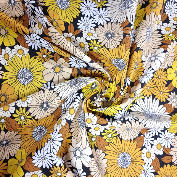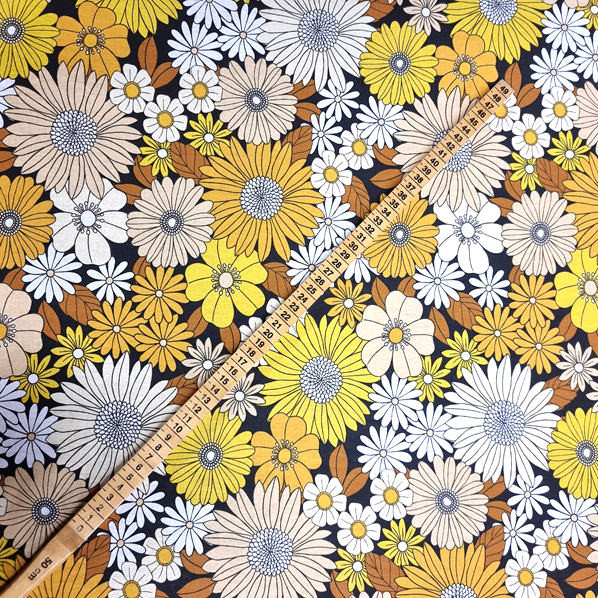 Du kanske undrar varför det heter kryptonit? Jo, det här med retro, blommigt och härliga färger, ja det är nästan omöjligt att motstå för en tygälskare. En högkvalitativ (cretonne) och härlig bomullsväv. Gör sig lika bra i skjortan, som i kjolen, som i gardinen, som i örngottet, som i, ja, du förstår, den passar till lite utav varje.