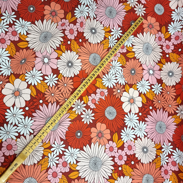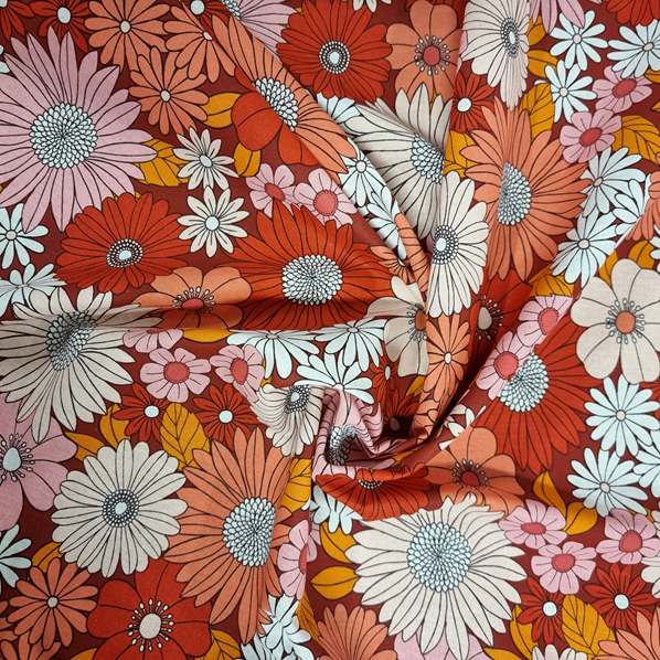 Bomullsväv i retromönster för kläder och inredning.