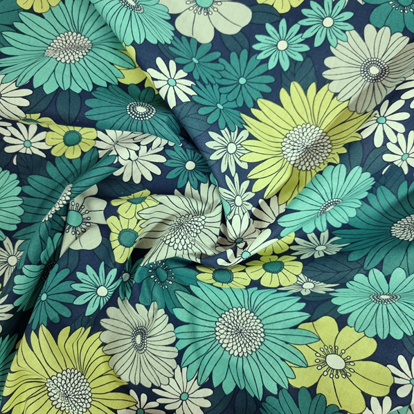 Bomullsväv i retromönster för kläder och inredning.