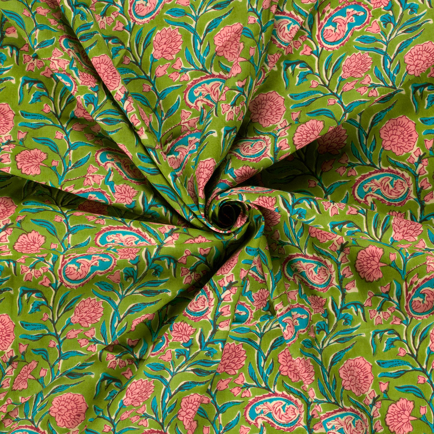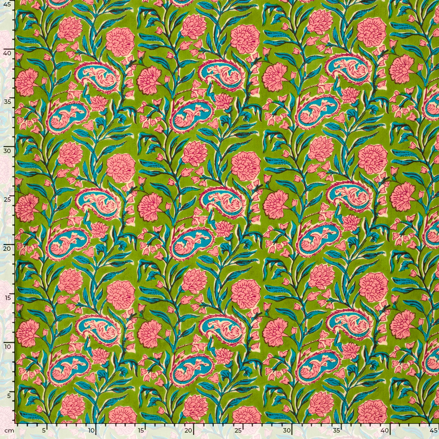 Bomullsvoile Blocktrycksblomma grön/rosa fg 23