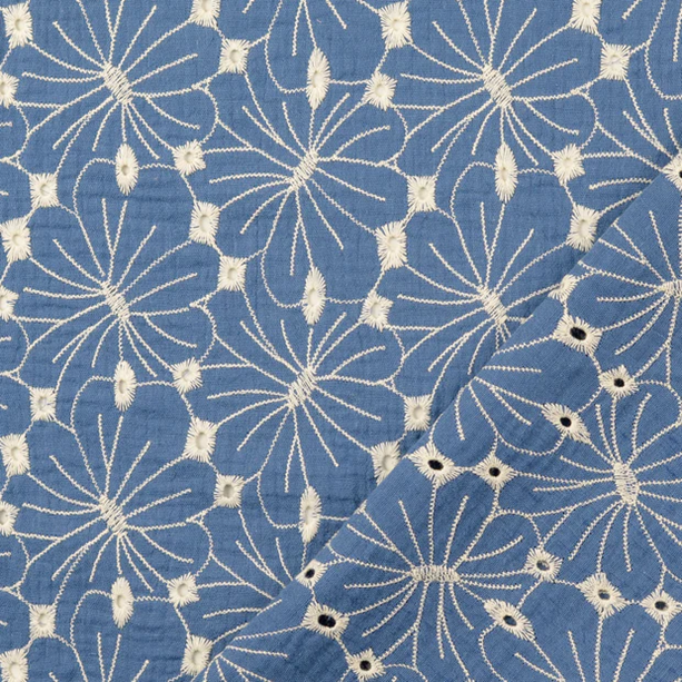 Brodyrmuslin Blomblad blå/naturvit fg 3028