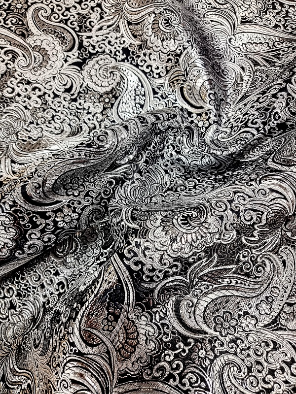 Ett sådant där tyg som får världen att stanna upp en liten stund. Du tänker ”Jag kan inte leva utan den!”. Lev ut, lev upp, det här tyget gör det möjligt. Tänk dig den där drömmiga klänningen, den vrålstiliga västen, tjusiga västen, manteln, byxorna etc. Jaquardvävt polyestertyg.
