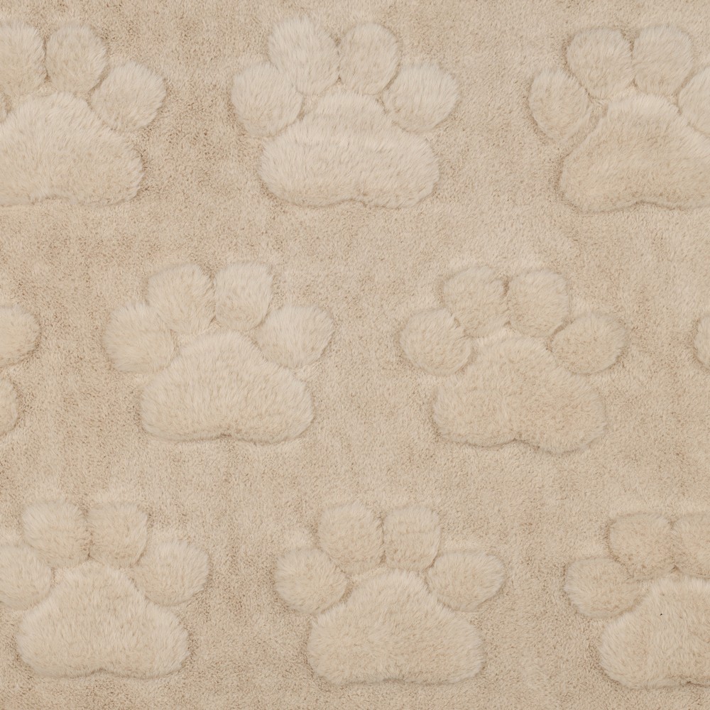 Ett super mjukt och gosigt fuskpälstyg med präglade tassar, omg! Där pälsen är som längst är den ca 10mm och där den är som kortast är den ca 5mm. Gör sig alldeles förträffligt som en kappa, en jacka, en pläd, ett överkast eller bara för att skämma bort hunden med etc.