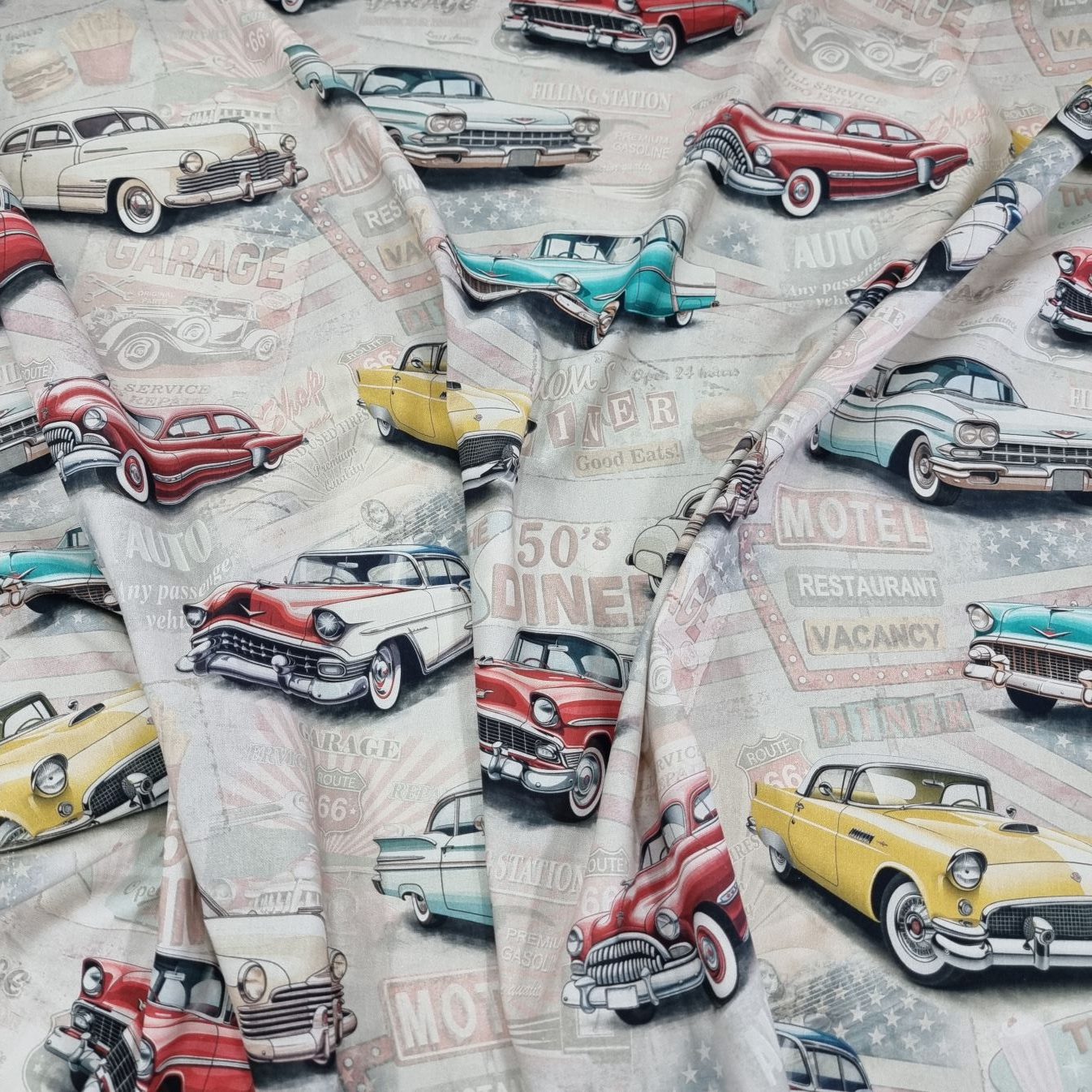 Bilar, bilar, bilar…… En lite kraftigare väv, som lämpar sig till kuddar, gardiner, dukar, klä om stolsdynor, kassar, väskor etc.