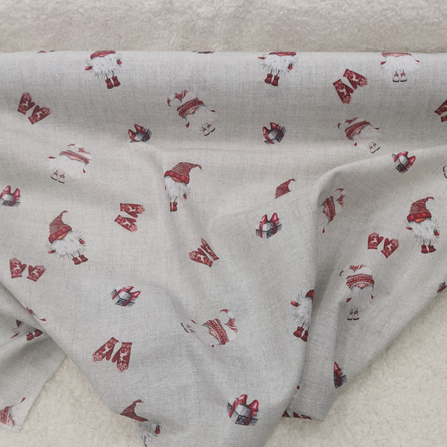 Dags att fixa till hemmet inför jul. Tomtar tryckta på en halvkraftig väv, lämplig till kuddar, gardiner, dukar, pyssel eller varför inte rentav till att klä in dina mest spektakulära klappar i tyg.