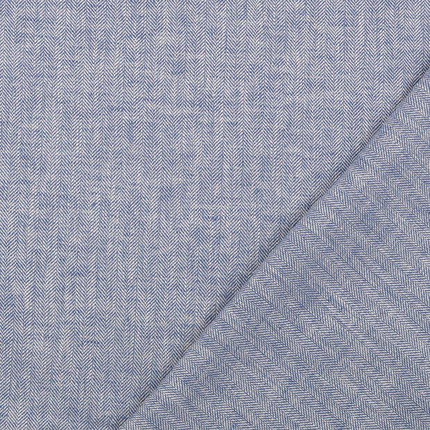 Halvlinne Fiskbensrand himmelsblå/off white fg 5029