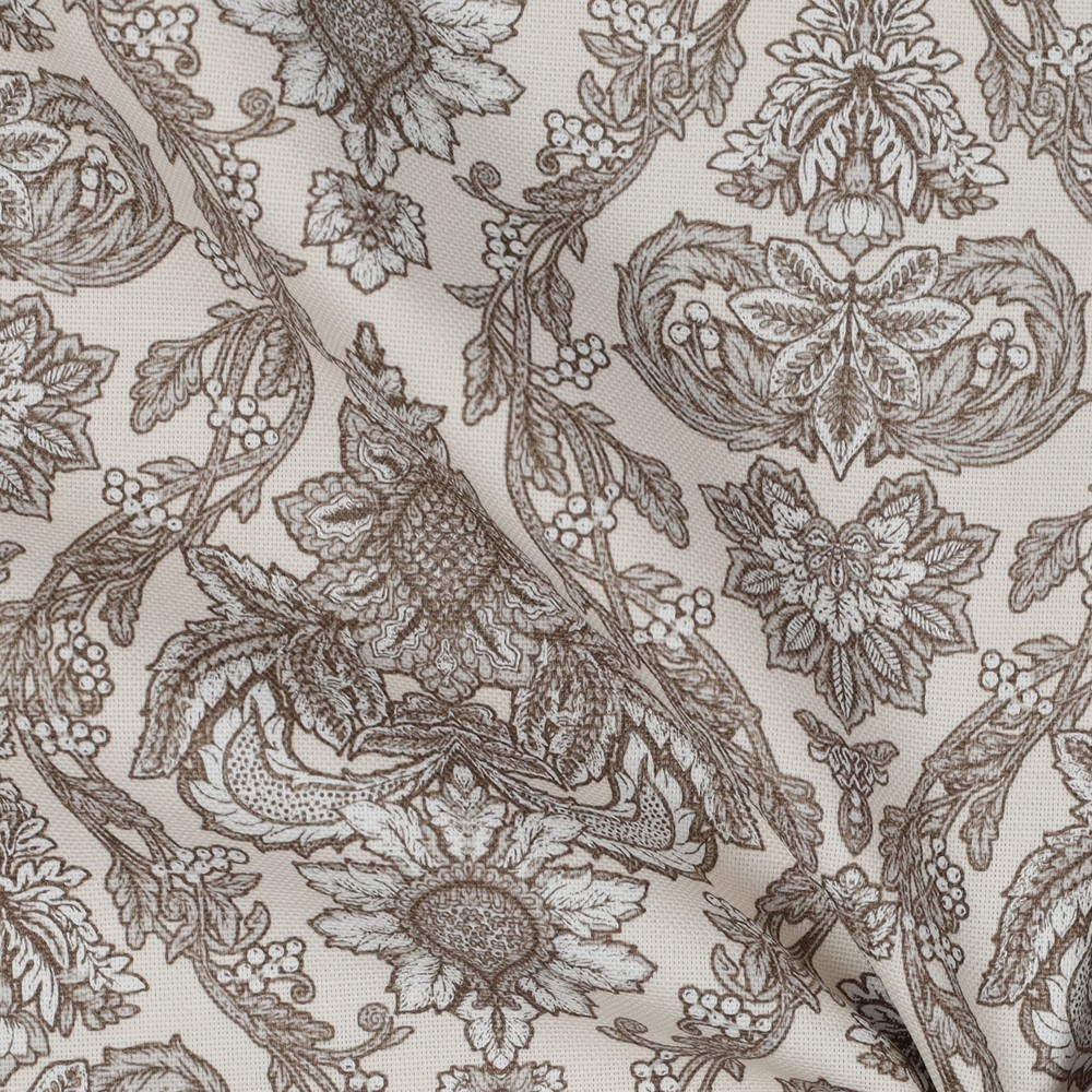 Det är klassiskt vackert i en sober färgskala. Den skriker inte, den bara knicksar lite värdigt på huvudet. En lite kraftigare men mjuk och följsam bomullsväv, som lämpar sig till kuddar, gardiner, dukar, klä om stolsdynor, kassar, väskor, förkläden, byxor etc.