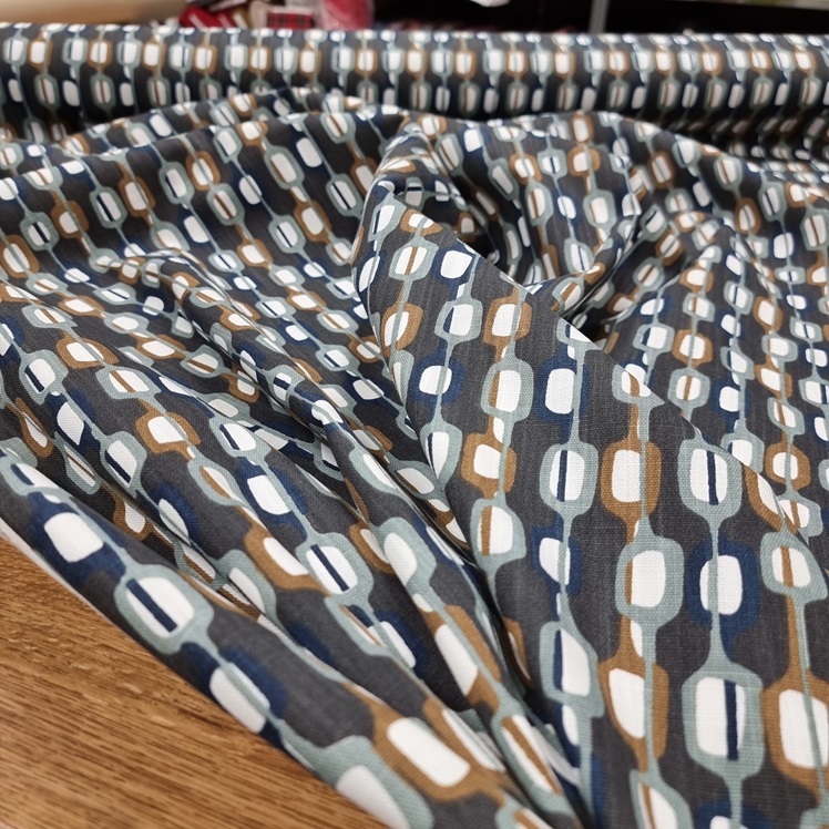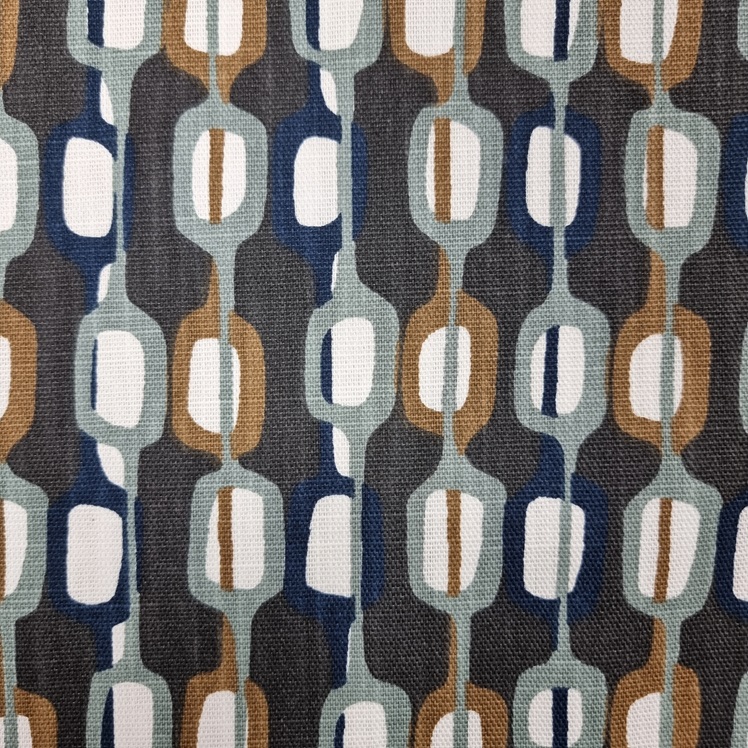 Spira of Sweden är det som står bakom denna retropärla. Tryckt på en lite kraftigare bomullsväv, som lämpar sig till kuddar, gardiner, dukar, klä om stolsdynor, kassar, väskor etc.
