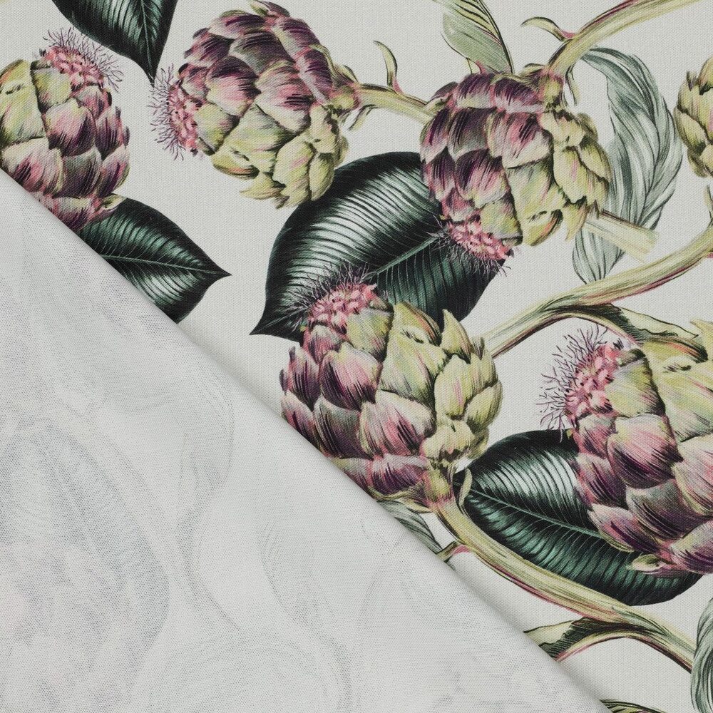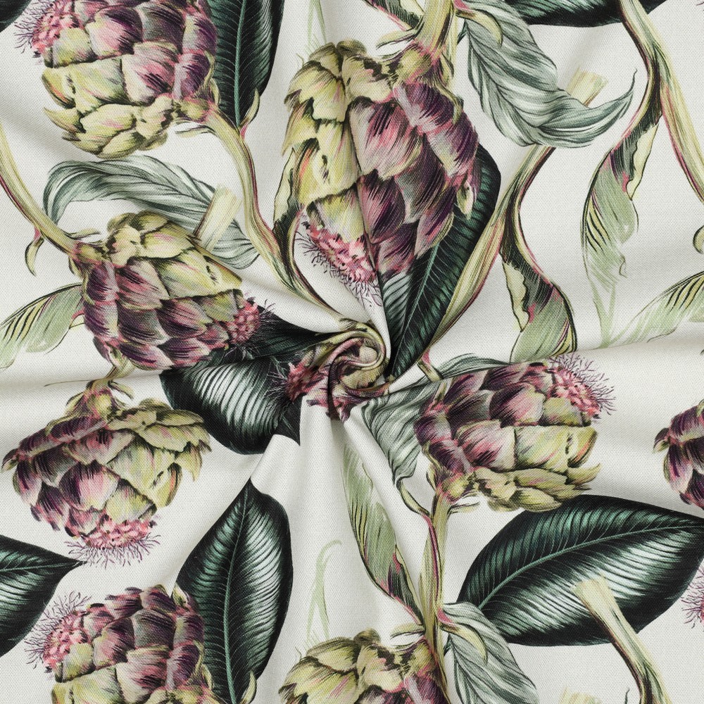 Det är klassiskt vackert i en lugnande färgskala. Det är något med kronärtskockan som känns både exotiskt och hemma samtidigt. Den är så otroligt vacker och vansinnigt god. Längsta bladet är 12cm. En lite kraftigare men mjuk och följsam bomullsväv, som lämpar sig till kuddar, gardiner, dukar, klä om stolsdynor, kassar, väskor, förkläden, byxor etc.