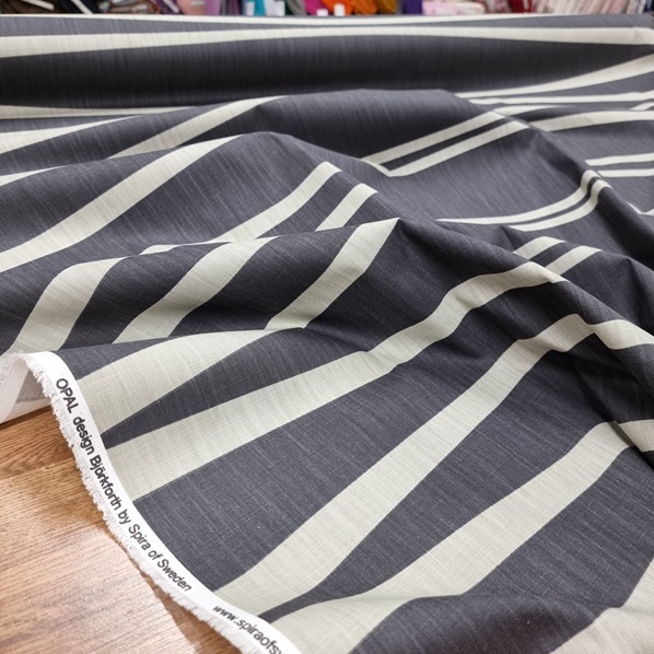 Spira of Sweden är det som står bakom denna klassiska enkla design. Tryckt på en lite kraftigare bomullsväv, som lämpar sig till kuddar, gardiner, dukar, klä om stolsdynor, kassar, väskor etc.