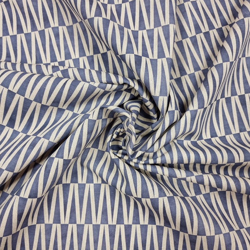 Väldigt mycket 60-tal, väldigt mycket hav och lugn. Ett rofyllt mönster helt enkelt. Tryckt på en lite kraftigare bomullsväv, som lämpar sig till kuddar, gardiner, dukar, klä om stolsdynor, kassar, väskor etc.[/vc_column_text][/vc_column][/vc_row]