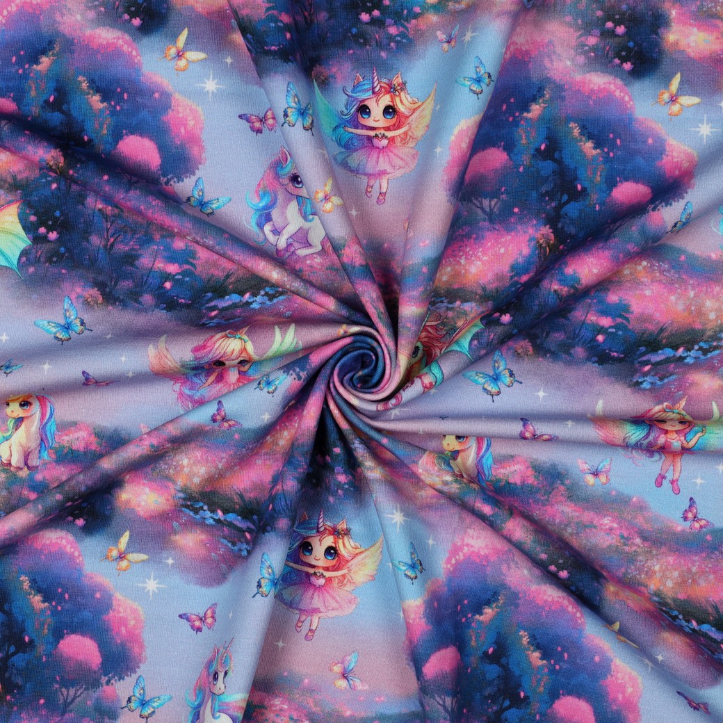 Den är mysig, den är inbjudande; mer förklaring behövs inte. Här har du exra allt vad gäller rosa, regnbågar, enhörningar och stjärnstoff. Drömmigt! Största fjärilen är ca 2cm. En skön jogging med öglad baksida i härliga färger. Passar alldeles strålande till allt från mysbyxor till tröjor, klänningar och hoodies etc.