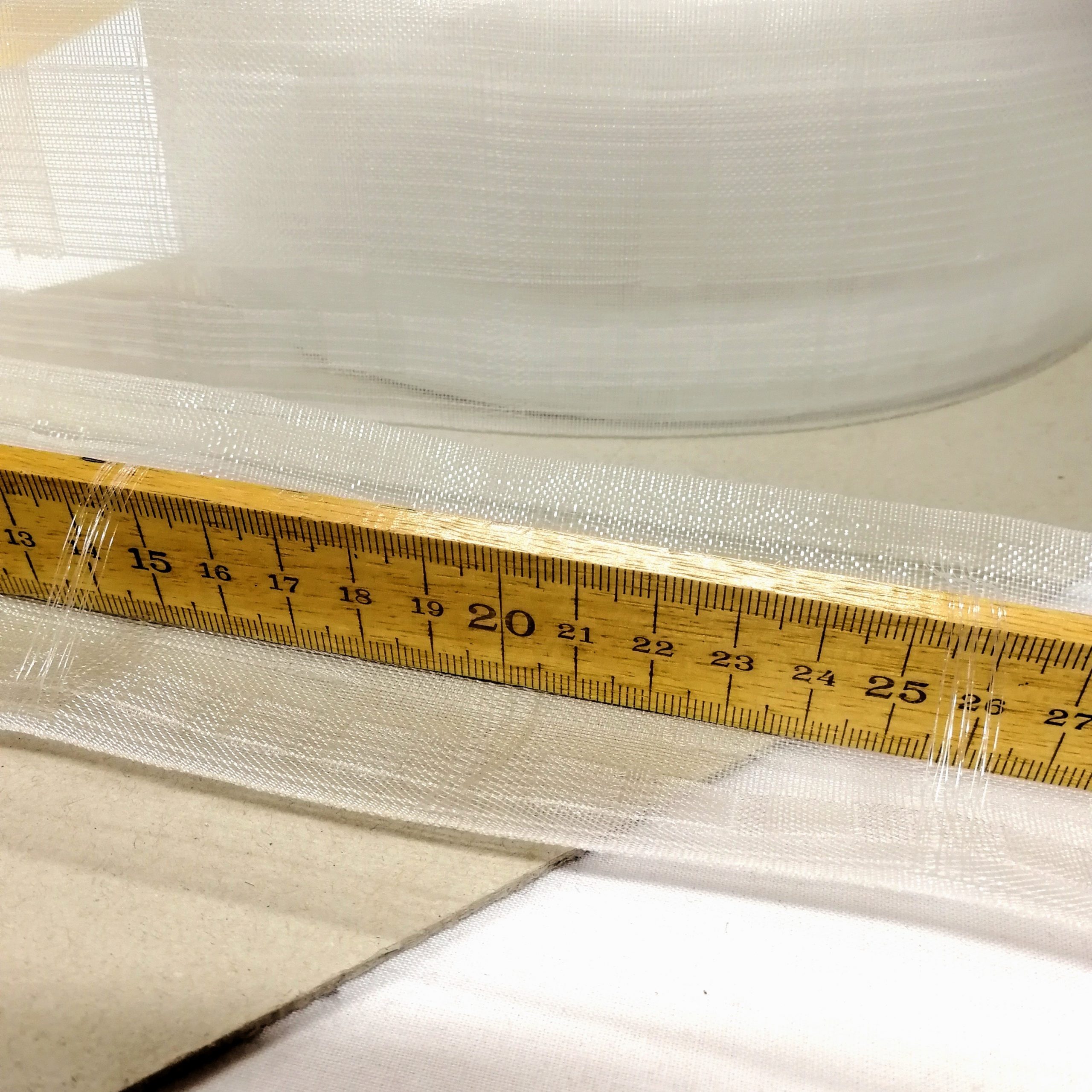 Sys högst upp på gardinen, precis som ett vanligt veckband men här finns flera upphängningsalternativ i samma band. Öljettbandsfunktionen ger jämna, lite djupare veck och du behöver bara trä gardinen på stången. Använd kirschkrokar, både för skena och stång, i de lite större fickorna och sist men inte minst finns den lilla fickan för uppsättning med ”räkor”. Det här bandet gör att du inte behöver veta i förväg hur du ska sättta upp gardinen eller om du vill byta uppsättning, men behålla gardinen.