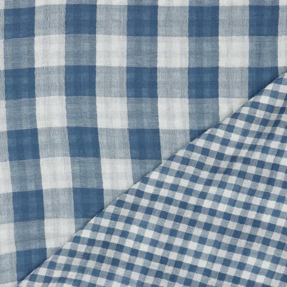 Älskade rutor. Tidlösa, kravlösa och tillför direkt den där känslan av mysigt och ombonat. Ett dubbelvävt, otroligt mjukt och behagligt bomullstyg med en liten skrynklig struktur. De stora rutorna är 3 cm och de små rutorna är strax över 1 cm. Passar ypperligt till bebisfiltar/snuttar, blusar, skjortor, vida byxor, klänningar eller varför inte en duk?