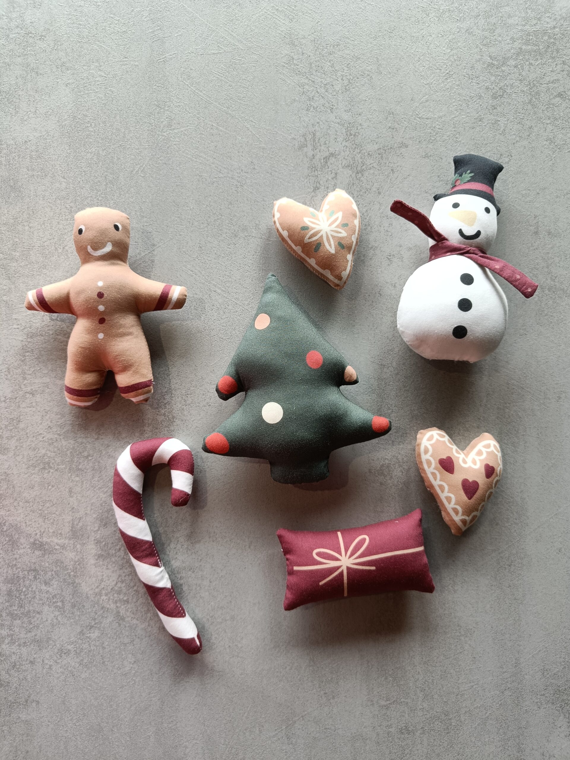 En panel med allt du behöver i tygväg för att göra ett eget dockhus med pepparkakstema.