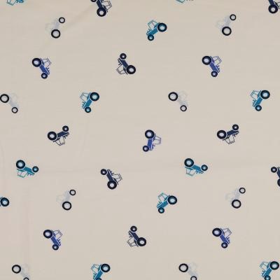 Väldans söta fordon i all sin enkelhet. Traktorerna mäter ca 2,5cm. Ett trikåtyg i en typisk tights/t-shirt-kvalité, med en stretch som gör att det lämpar sig både till tightare och lösare plagg. Det är mjukt, följsamt och framförallt väldigt bekvämt.