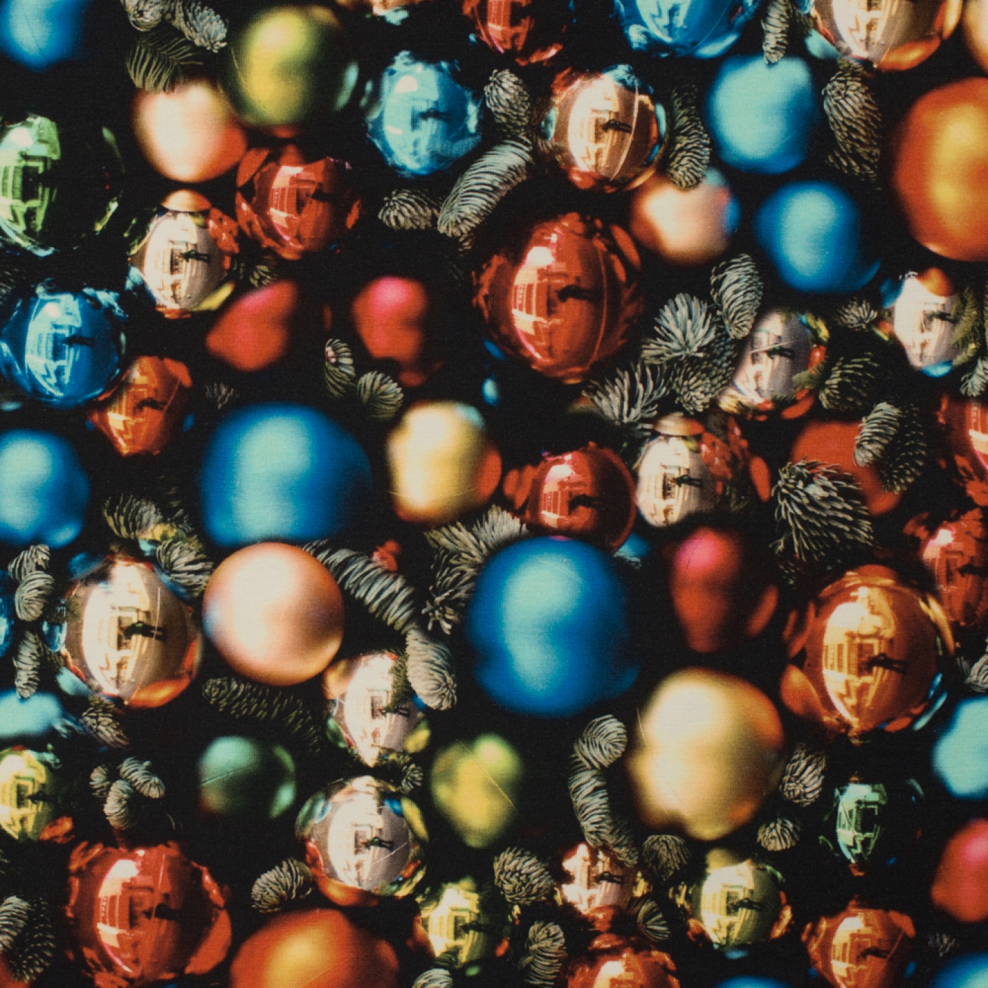 Vackra julgranskulor i så där mysiga glada färger. Motiven är mellan 3cm och 5cm stora. Ett trikåtyg i en typisk tights/t-shirt-kvalite, med en stretch som gör att det lämpar sig både till tightare och lösare plagg. Det är mjukt, följsamt och framförallt väldigt bekvämt.
