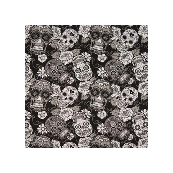 Till alla dödskalle-älskare, här har du dem! I det här fallet får du dessutom extra mycket blommor på köpet. Trikåtyg i en typisk tights/t-shirt-kvalité, med en stretch som gör att det lämpar sig både till tightare och lösare plagg. Det är mjukt, följsamt och framförallt väldigt bekvämt.