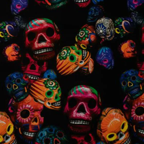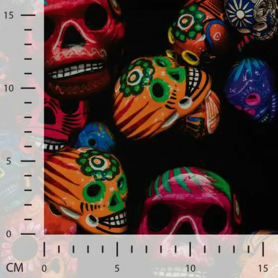 Mjuk bomullstrikå med färgstarka dödskallar.