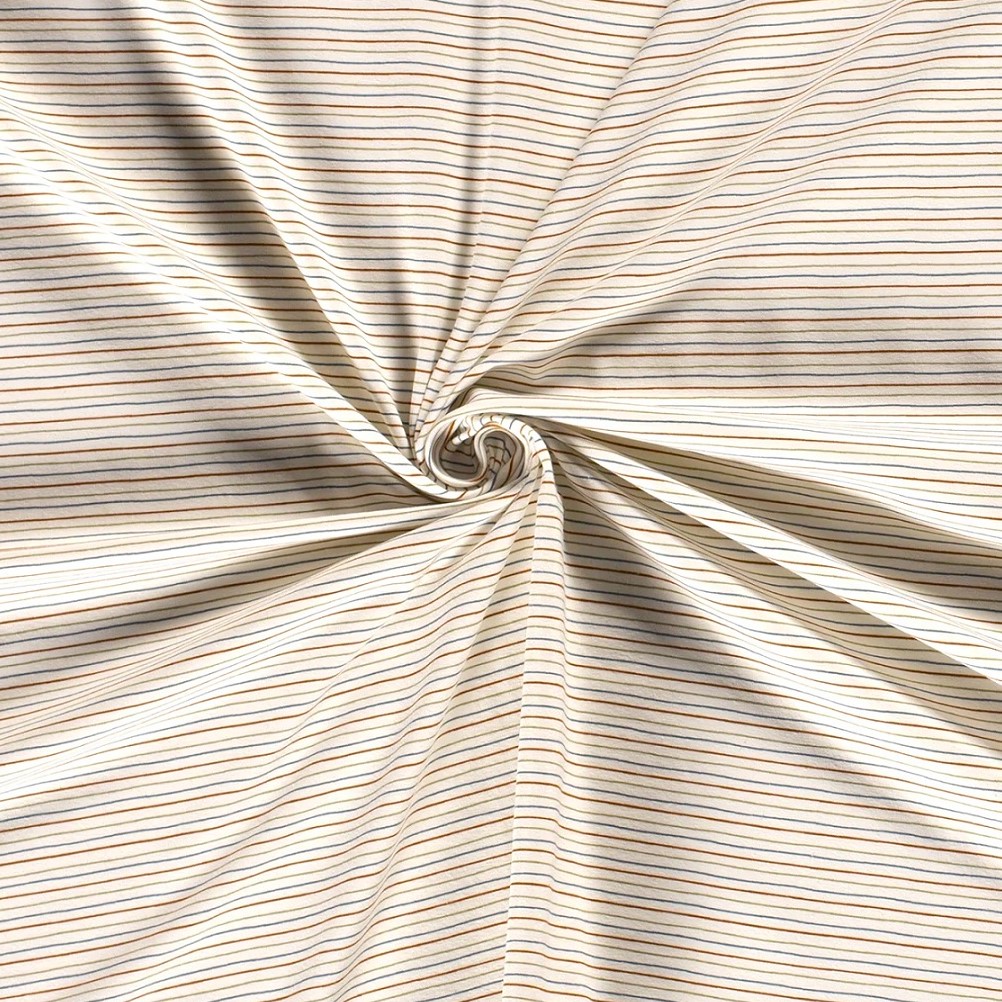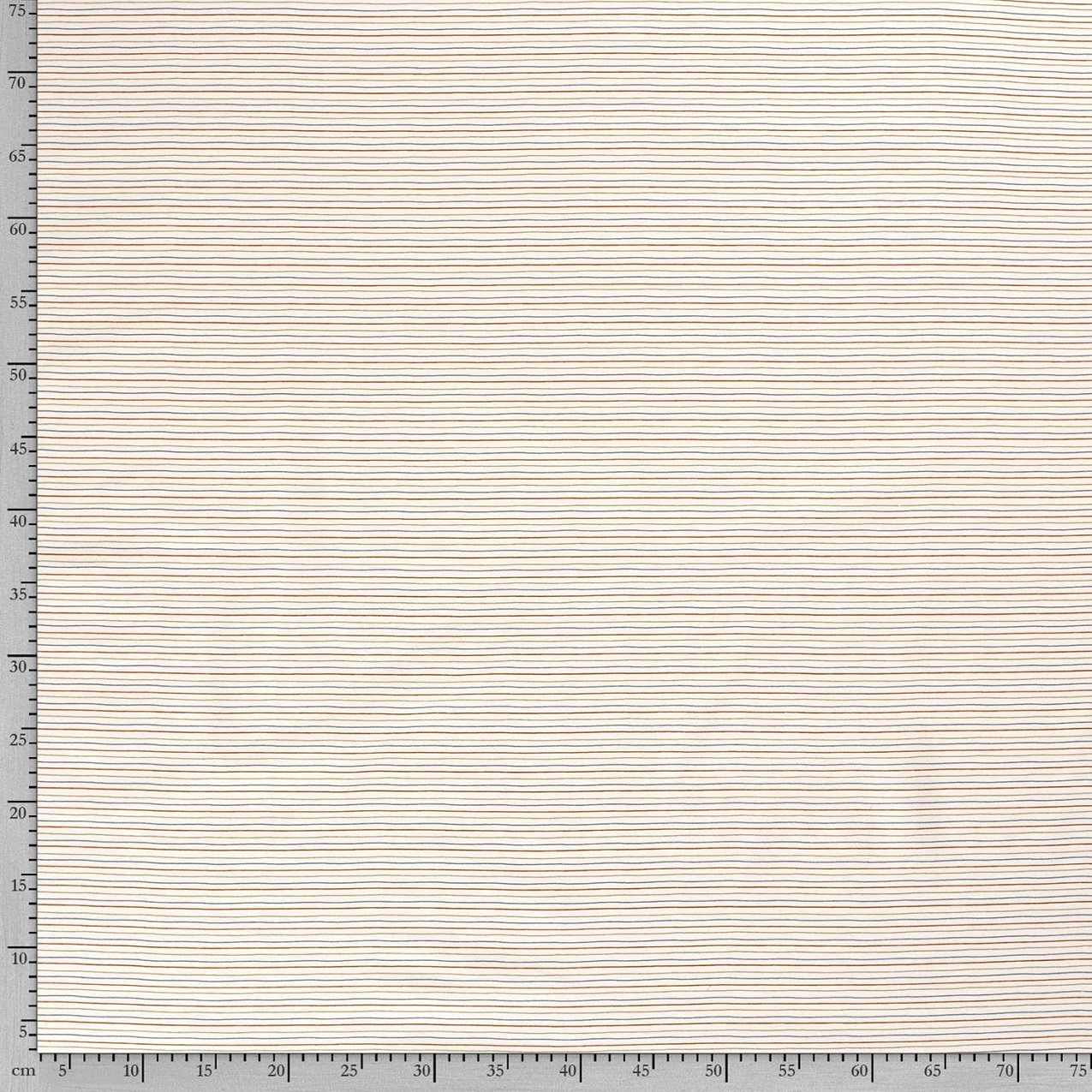 Ibland är det enkla det bästa. En tunn liten halvrak rand med ca 0,5 centimeters mellanrum. Ett trikåtyg i en typisk tights/t-shirt-kvalite, med en stretch som gör att det lämpar sig både till tightare och lösare plagg. Det är mjukt, följsamt och framförallt väldigt bekvämt.