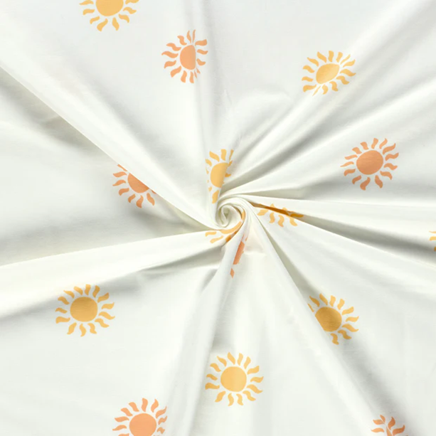 Här var det garanterat solsken – Lys upp din omgivning och sätt ett leende på läpparna. Solarna är runt 5cm stora. Ett trikåtyg i en typisk tights/t-shirt-kvalité, med en stretch som gör att det lämpar sig både till tightare och lösare plagg. Det är mjukt, följsamt och framförallt väldigt bekvämt.