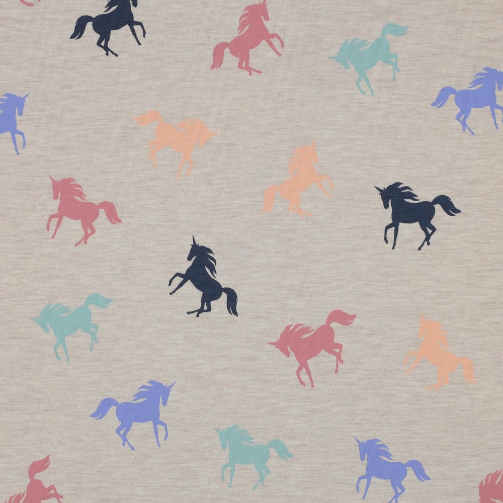 Till alla enhörningsälskare där ute, här kommer ett med stegrande unicorns i pastelliga toner. Filurerna är ca 6cm. Trikåtyg i en typisk tights/t-shirt-kvalite, med en stretch som gör att det lämpar sig både till tightare och lösare plagg. Det är mjukt, följsamt och framförallt väldigt bekvämt.