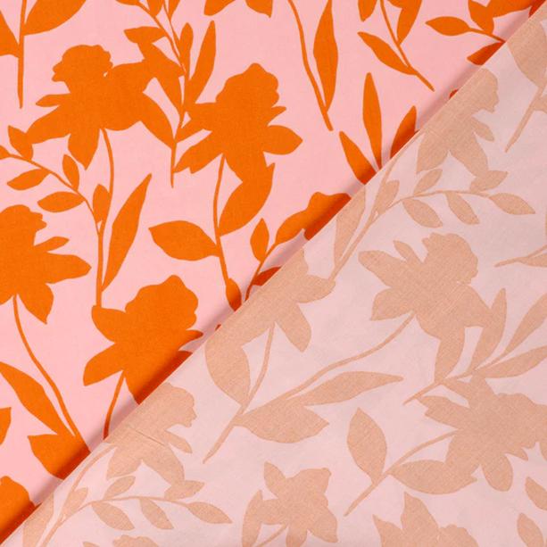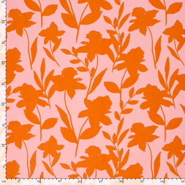Viskospoplin Skuggblomster rosa/orange fg 36