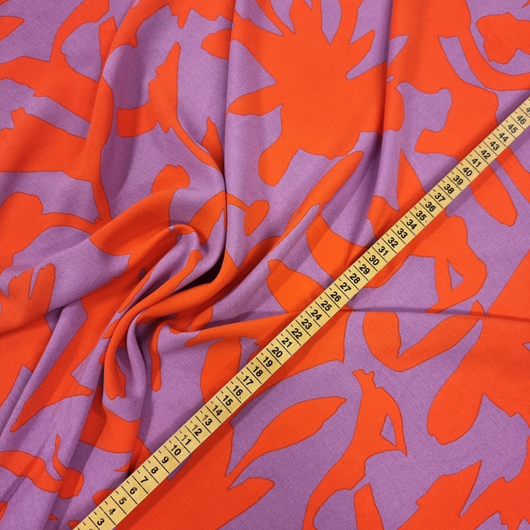 VISKOSPOPLIN STÄNKTA TECKEN RÖDORANGE/LILA FG 9