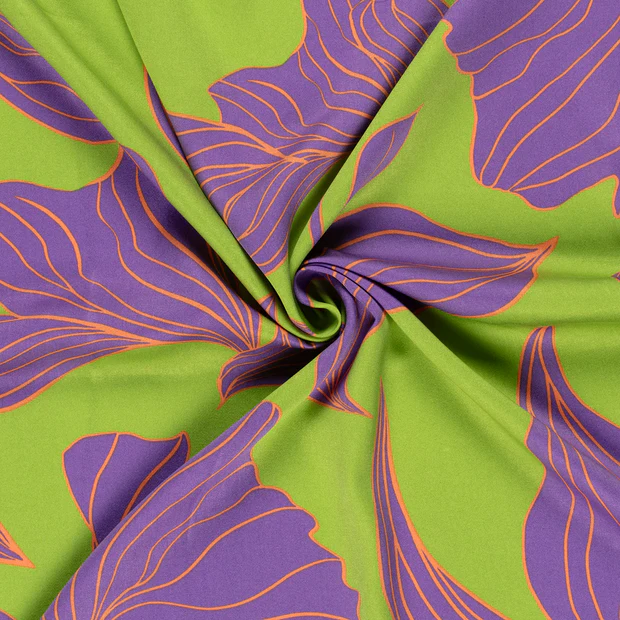 Viskossatin Big leaf limegrön/lila fg 23