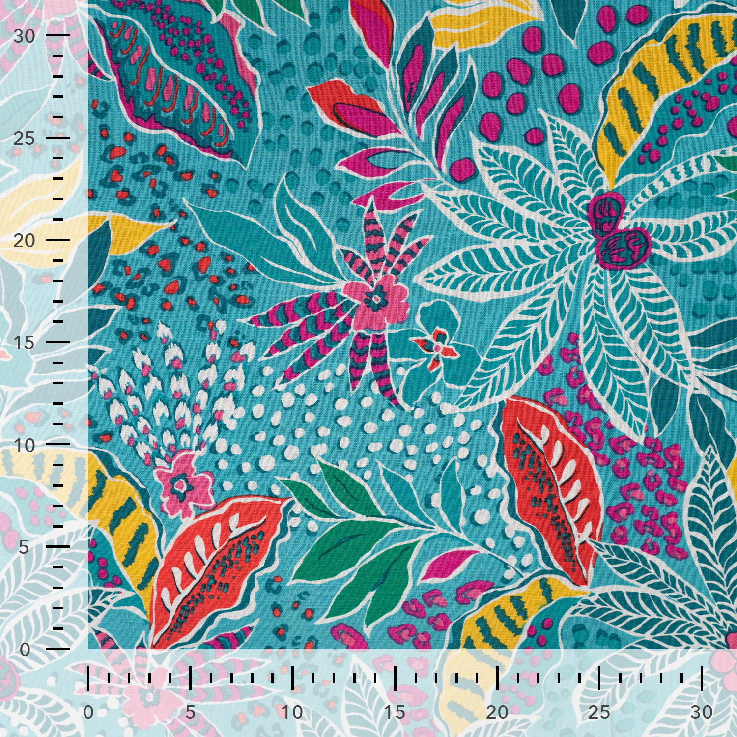 Helt galet fin, åtminstone om man älskar färg. Sa vi att den dessutom är löjligt skön också? Inte, jo du förstår, den känns som en dröm. En härligt fladdrig viskos med lite struktur. Tungt fall och lite stretch. Förutom den där blusen, så kan du tänka dig vida byxan, byxdressen, kaftanen, långskjortan, klänningen etc.