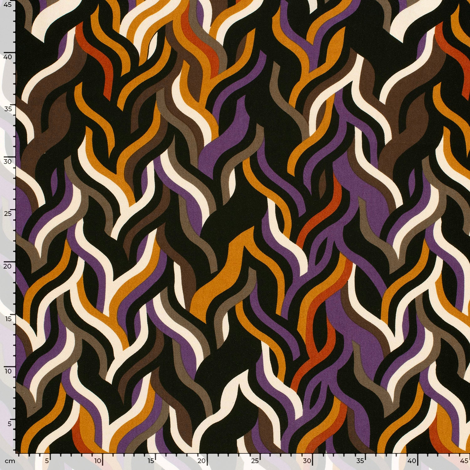 Brända, fylliga toner i ett abstrakt böljande mönster. En härlig viskostwill (kypertvävd) med tungt, fint fall. Förutom den där blusen, så kan du tänka dig vida byxan, byxdressen, kaftanen, långskjortan, klänningen etc.