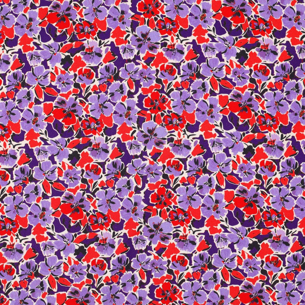 Helt galet fin, åtminstone om man älskar färg och blommigt.  Största blomman är ca 3cm. En härligt fladdrig viskostwill (kypertvävd) med bra fall och lite stretch. Förutom den där blusen, så kan du tänka dig vida byxan, byxdressen, kaftanen, långskjortan, klänningen etc.