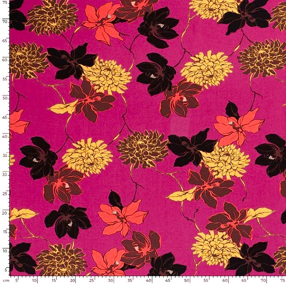 Det är blommigt, det är mycket men det är ändå vilsamt på något vis. En härligt fladdrig viskostwill (kypertvävd) med bra fall. Förutom den där blusen, så kan du tänka dig vida byxan, byxdressen, kaftanen, långskjortan, klänningen etc.[/vc_column_text][/vc_column][/vc_row]